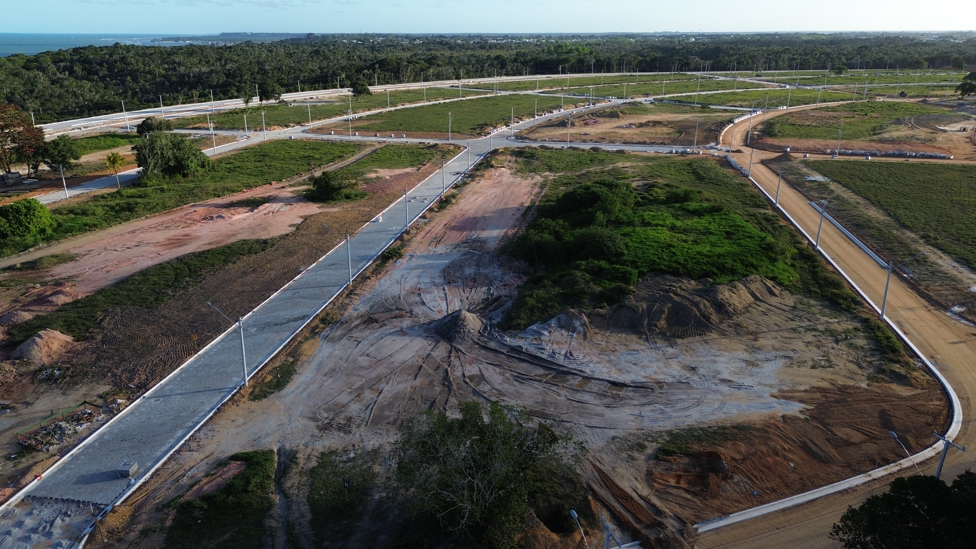 A Bahia Engenharia adotou uma estratégia de execução em etapas paralelas, realizando simultaneamente a rede aérea e subterrânea para otimizar o cronograma. Instalamos 192 postes de distribuição e 42 pontos de iluminação subterrânea, com equipe técnica dedicada para acompanhamento em cada etapa e alinhamento constante com a Coelba, garantindo 100% de aprovação nas fiscalizações. Com isso, entregamos o sistema elétrico em 5 meses, 20% mais rápido que a média de mercado, preparando os 500 lotes para negociação imediata. Para nós, não se tratava apenas de instalar postes, mas de construir a infraestrutura necessária para uma comunidade inteira prosperar.